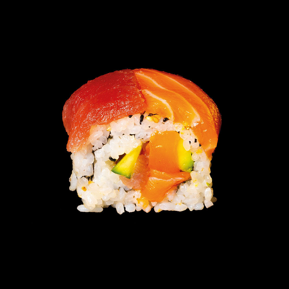 Sushi rice (white rice, water, vinegar sucrose, spirit vinegar, rice vinegar, salt, cane molasses, sugar), avocado, cucumber, salmon, tuna, pickled ginger, soy sauce (water, wheat, soybean, salt), wasabi (Japanese horseradish, horseradish, natural mustard oil), seaweed, sesame seeds.